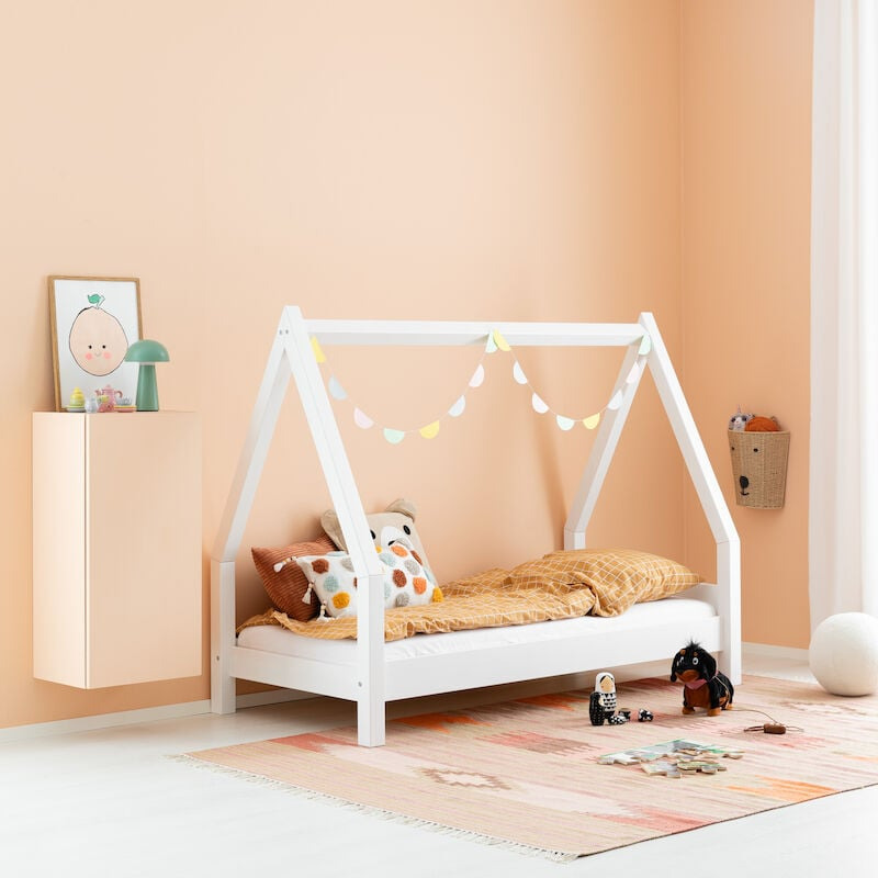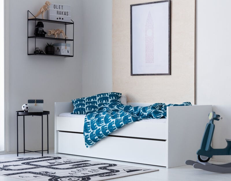 Lastensänky on valmistettu kestävästä MDF-levystä ja viimeistelty laadukkaalla maalipinnalla, joka kestää hyvin päivittäistä käyttöä. Tukevan rakenteen ansiosta sänky tarjoaa turvallisen ja vakaan nukkumispaikan, ja 12 mm paksu vaneripohja varmistaa, että patja pysyy hyvin paikallaan ja tukee lasta oikein nukkuessa.